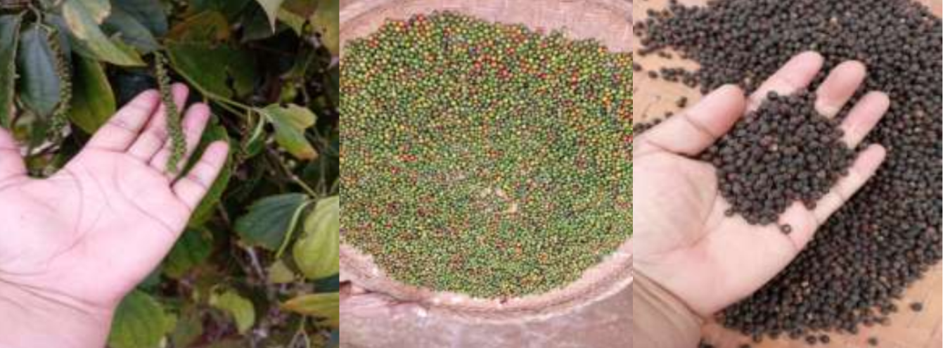 regions. The pepper seeds grow in clusters, which are harvested twice a year when they reach